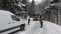 Mittels Seilwinde konnte der Lieferwagen zügig geborgen werden und danach konnten wir den Güterweg wieder für den Verkehr freigeben.